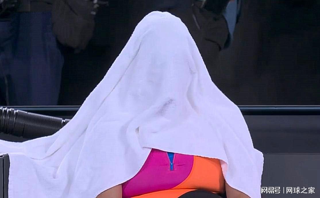 最后来猜一猜认一认。下面这张图片是一位球员局休时用毛巾蒙头。不作提示,您能认出她是谁吗?