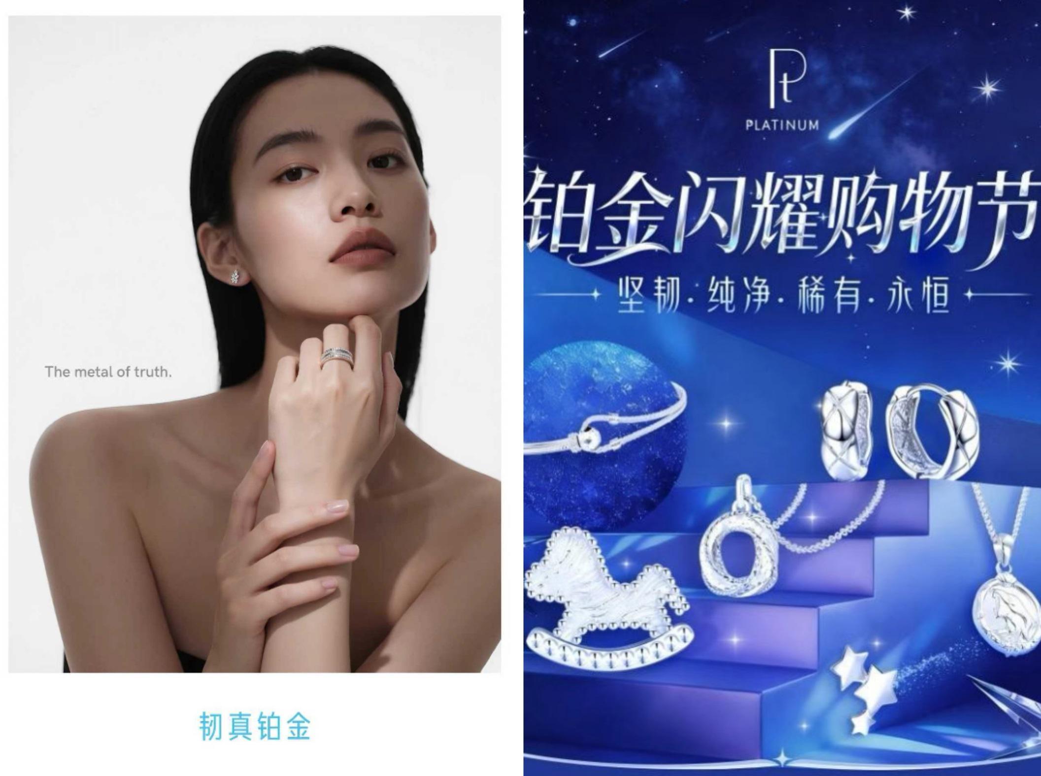 10月,协会成功主办"玄奘之路戈壁挑战赛",以"韧行千里、光耀心途"为主题,将铂金材质特质,与玄奘大师"笃行不怠、求法初心"的人文精神深度融合。同时,协会持续通过社交平台进行消费者培育,构建起关键意见领袖(KOL)、关键意见消费者(KOC)、关键意见销售(KOS)等协同联动的传播矩阵。第四季度,Pt x"泛生活"结合双十一、双十二、及年末礼赠等营销节点,围绕悦己消费、好友礼赠、情侣信物、情感维系等多元生活场景,升级打造了一系列引发消费者情感共鸣的传播内容。此外,通过明星、名人拍摄与植入的形式,将铂金首饰与时尚态度、专业精神或个人叙事深度绑定,全方位塑造铂金首饰在现代生活中的积极、坚韧、纯粹的形象。